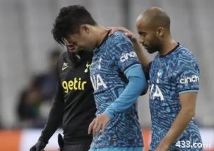 前一天,孙兴慜在迎战法国马赛的欧冠联赛最后一轮小组赛上,争抢头球时撞到对方球员姆本巴的肩膀,上半场第27分钟被换下场。他留下鼻血,眼部肿胀严重。