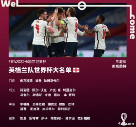 英格兰官方公布了出征卡塔尔世界杯的最终大名单。