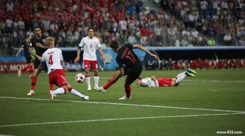 2018年世界杯1/8决赛第四场比赛在下诺夫哥罗德球场展开角逐,克罗地亚4比3淘汰丹麦。M-约根森57秒闪电破门,曼朱基奇第4分钟扳平,摩德里奇加时赛射失点球。双方120分钟内1-1战平,克罗地亚点球3-2取胜。克罗地亚1/4决赛将战俄罗斯。