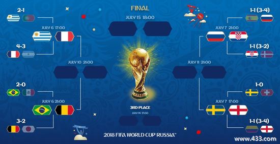 首场比赛在下诺夫哥罗德展开较量,将由乌拉圭对法国。上半区的另外一场比赛,五届冠军巴西将在喀山约战比利时。下半区东道主俄罗斯在索契迎战克罗地亚,瑞典则将与英格兰在萨马拉争夺一张四强门票。