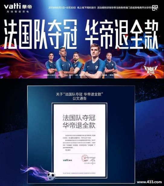 其实吃瓜群众多虑了,其实,这个营销方案,从一开始就稳赢,如果法国队夺冠,虽然华帝会因此支付几千万元的退货款,但华帝是法国赞助商,法国队的夺冠无疑会给华帝带来不可估量的品牌曝光和传播,其价值远远大于几千万。如果法国队没有夺冠,奔着这个噱头购买了产品,华帝促进销量也是数钱数的手抽筋。因此,无论法国是否夺冠,华帝都是赢家。