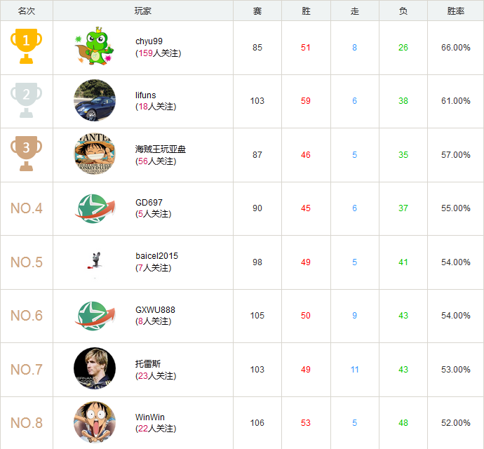 12月第4名GD697和第6名GXWU888因其推荐内容不符合规则,被取消领奖资格,排名7、8的玩家顶替。
