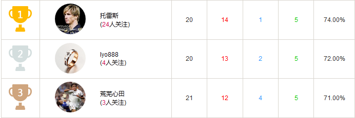 1.25-1.31百家推荐排名如上图所示: