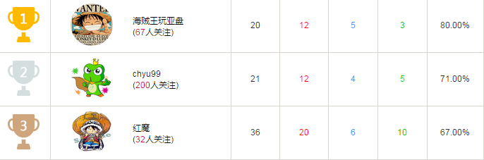 第一名:海贼王玩亚盘 奖金:1000元