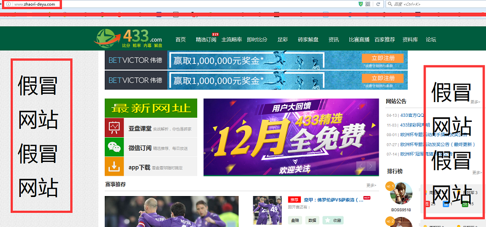 另,433足球网将以合法手段对这些假冒网站进行打击。最后感谢各位用户对本网的支持!
